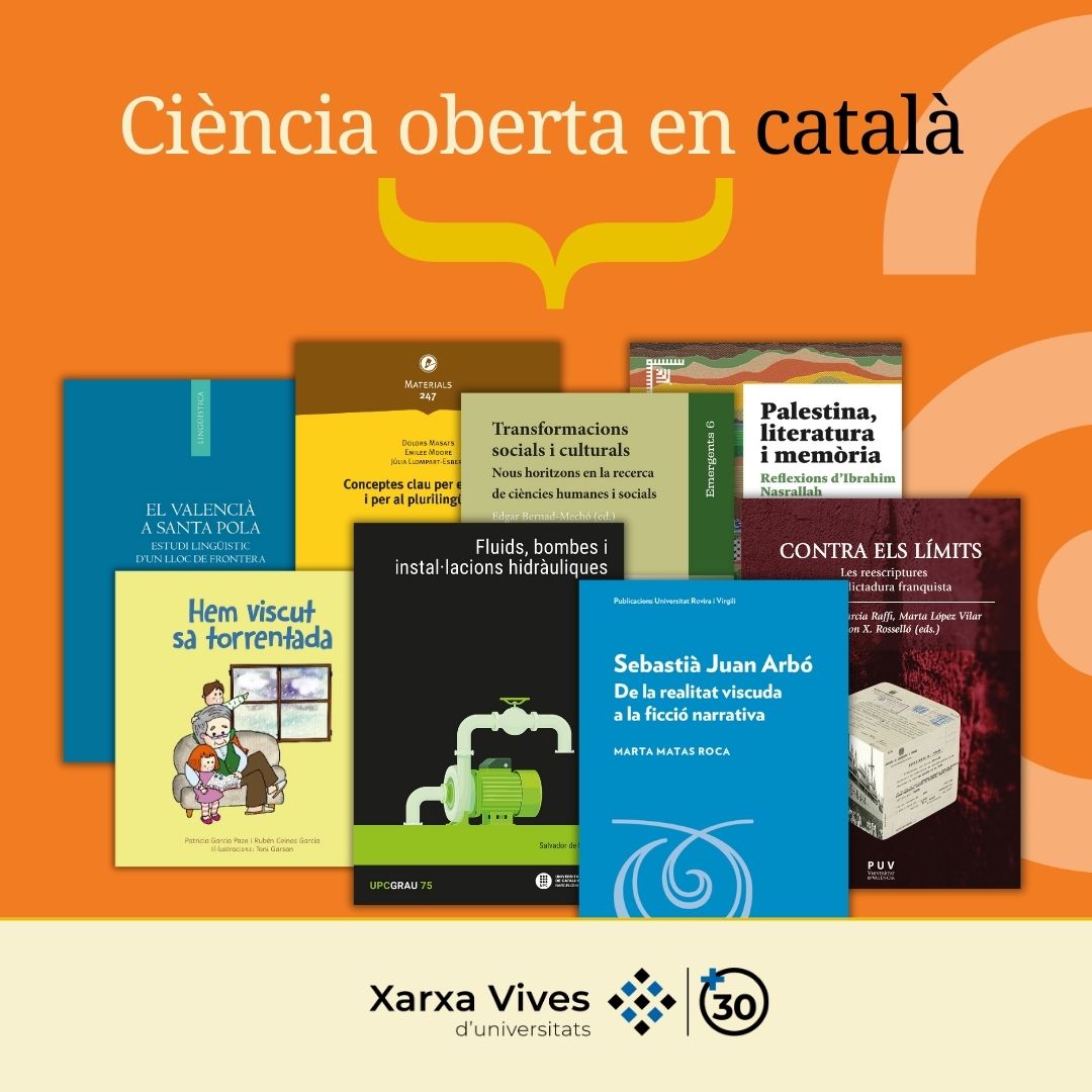Amb motiu de la Setmana Internacional de l’Accés Obert les editorials universitàries difonen la recerca i fomenten l’equitat en l’accés al coneixement. Enguany, del 20 al 26 d’octubre, a través de la campanya Ciència Oberta en Català, les editorials i serveis de publicacions universitaris de la Xarxa Vives, posen a l’abast de la comunitat universitària el següent recull de novetats literàries. Fes clic en la imatge per accedir-hi de forma gratuïta.