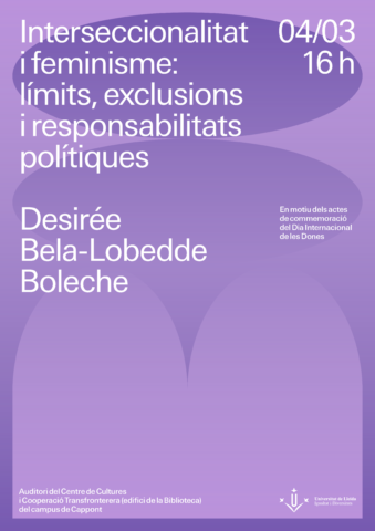 La Secció d’Igualtat de Gènere Dolors Piera de la unitat d’Igualtat i Diversitat de la Universitat de Lleida concentra l’acte central de commemoració del 8 de març en una conferència de l’activista feminista antiracista Desirée Bela-Lobedde, que porta per títol “Interseccionalitat i feminisme: límits, exclusions i responsabilitats polítiques”. La jornada abordarà la relació entre feminisme i interseccionalitat, analitzant com les opressions de gènere es creuen amb el racisme, la classe o l’origen i alhora, reflexionarà sobre els límits del feminisme hegemònic i les exclusions que genera.