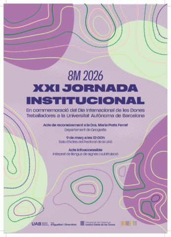 Des del Servei d’Igualtat i Diversitat de la UAB s’ha organitzat la XXI Jornada Institucional en commemoració del Dia Internacional de les Dones Treballadores. La jornada s’iniciarà amb la intervenció d’obertura del rector Javier Lafuente Sancho i continuarà amb la presentació, a càrrec de la secretària general Esther Zapater, de les principals línies de treball i de les polítiques d’igualtat de gènere de la UAB. Entre les diferents activitats, també destaca una conversa amb l’activista hondurenya Cintia Julissa i la terapeuta comunitària maia Elsa Rabanales “Per una justícia reparadora de violències sexuals a Guatemala i Hondures”, diverses xarrades relacionades amb la salut, actuació de glosa “S’improvisen els versos, no els drets” i activitats físiques, entre altres.